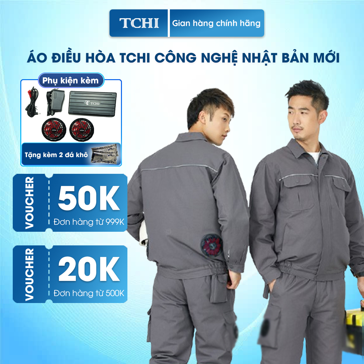 Áo Điều Hòa TCHI được sản xuất với công nghệ Nhật Bản. Áo sử dụng 2 quạt thổi không khí từ ngoài làm mát, giảm nhiệt độ. Mua ngay tại đây!